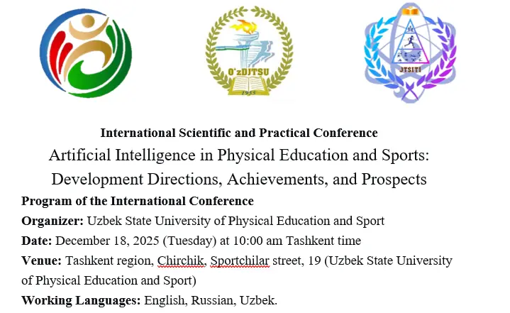 Özbekistan Devlet Beden Eğitimi ve Spor Üniversitesi ev sahipliğinde düzenlenen “Artificial Intelligence in Physical Education and Sports: Development Directions, Achievements, and Prospects” konuşmacı olarak katıldık.